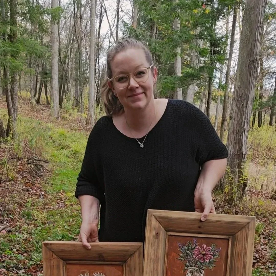 My art is inspired by my love for the land that surrounds me in rural NY. I am inspired by the rolling hills, simple landscapes and animals. I also love capturing the simple moments in life, small moments that bring back memories for me! I am primarily a painter, but love all things rustic and you will see that within my work- i love combining natural elements alongside my paintings.